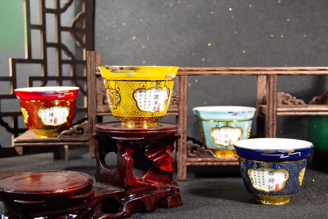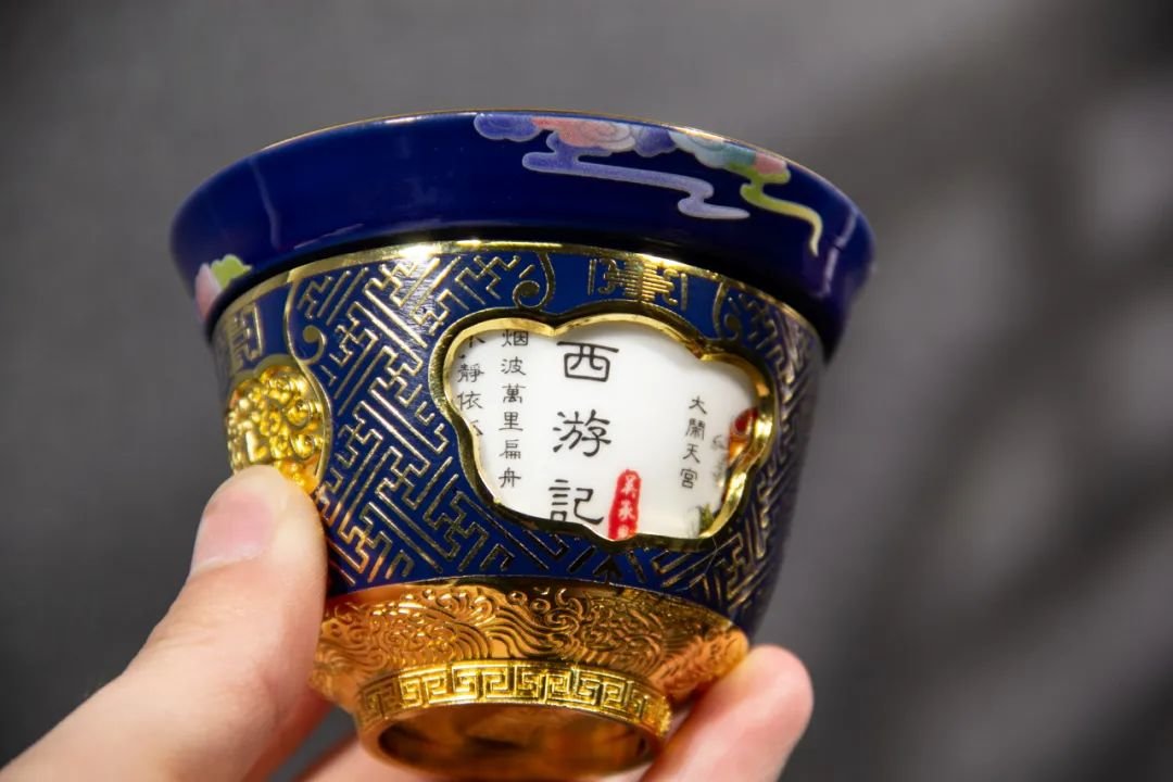 通过现代制胎工艺,创新传统的点蓝技艺,打造的这套四大名著转心杯,可谓集传统和现代之大成者。