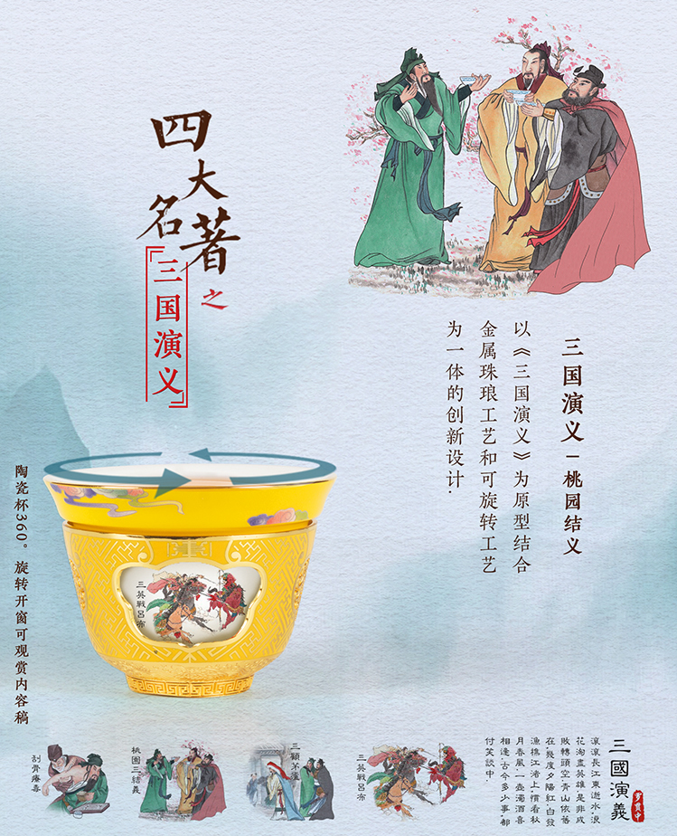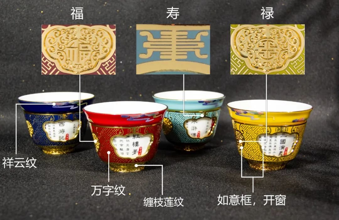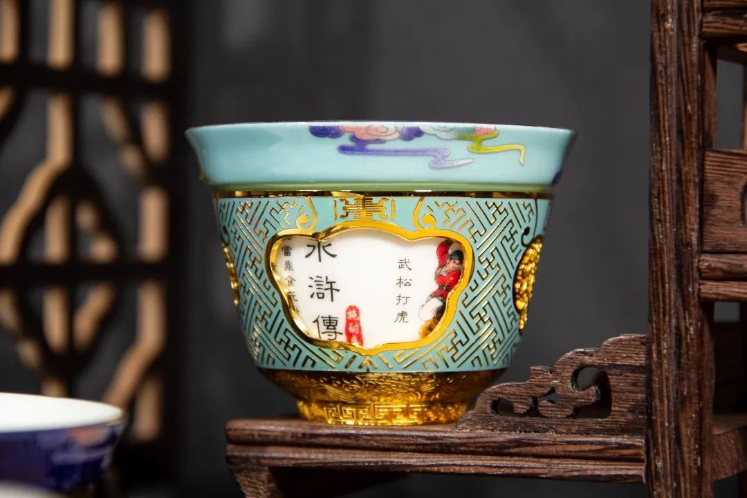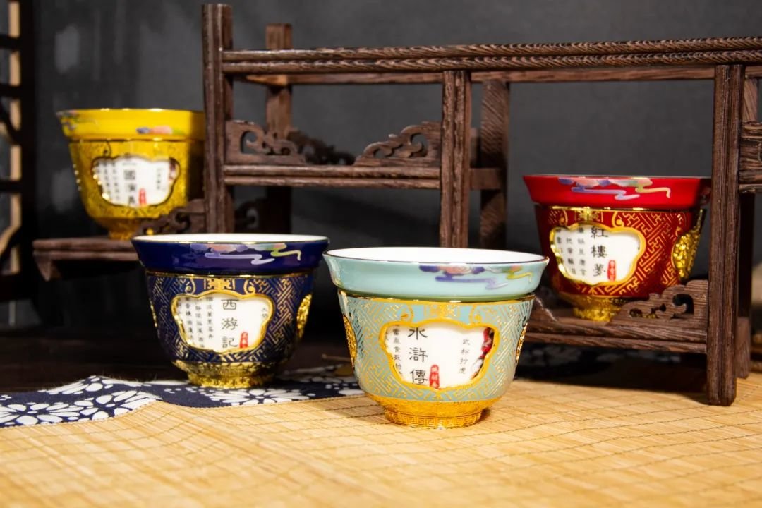 此套四大名著转心杯也是如此,不管是结构、造型、色彩、纹饰的设计,还是烧制火候的控制,每一个细节都精心把控。