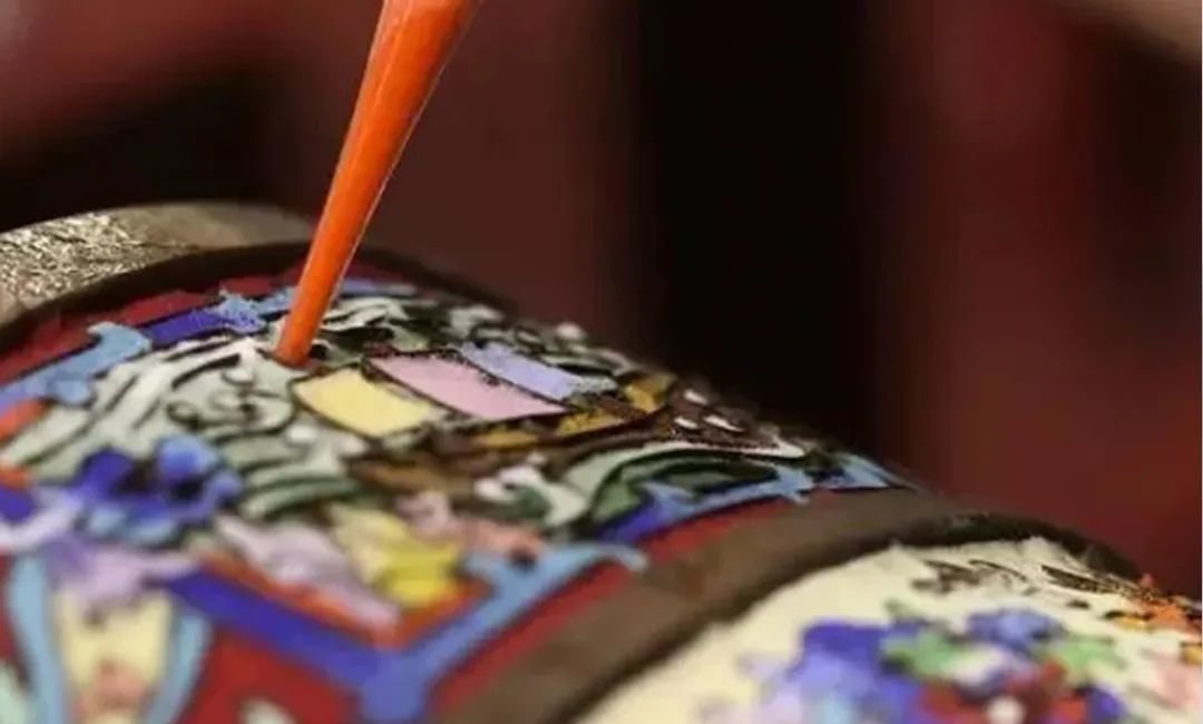 它需要在铜胎上以细薄的金线或铜丝一点点掐成花纹,中充珐琅釉烧制而成。工序耗时耗力,清末时皆为宫廷造办,不得流入民间。