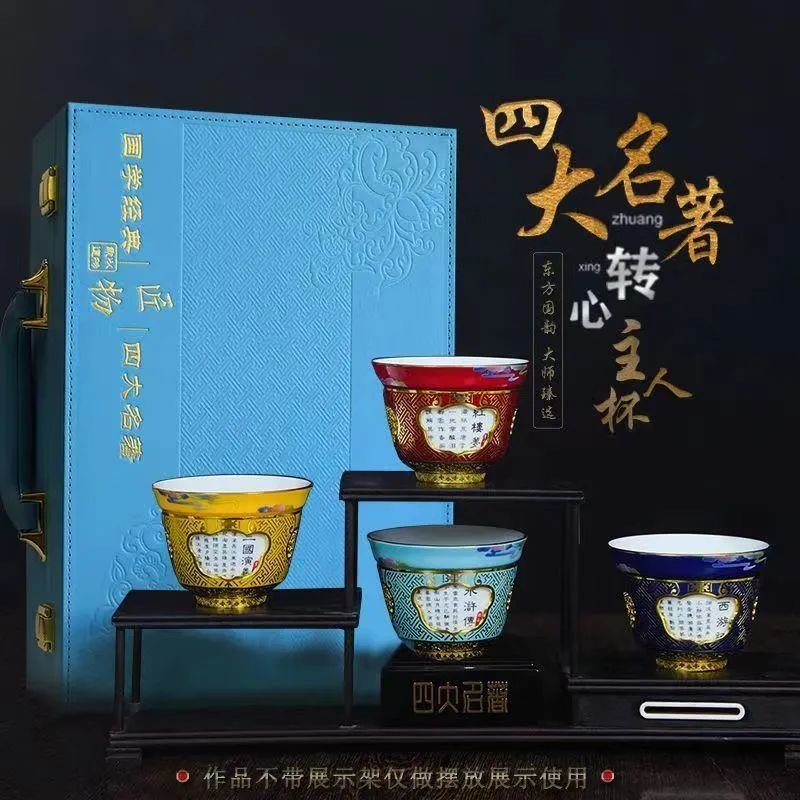 四色杯子,内壁分别绘有四大名著主题插画,古韵悠长,赏心悦目。