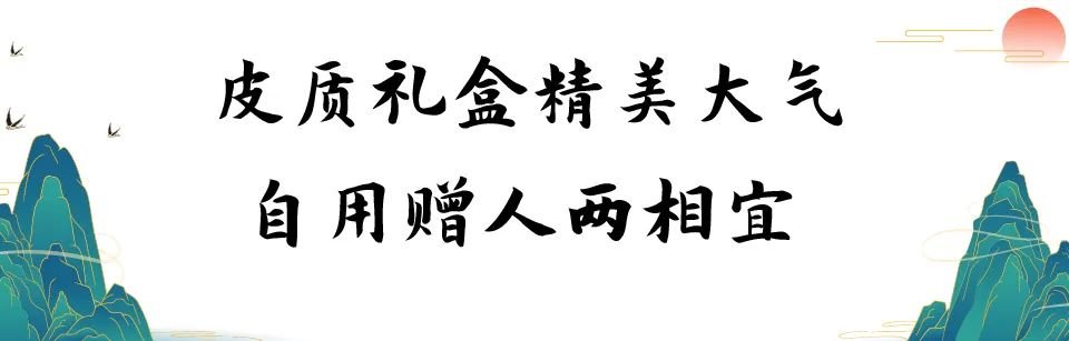 精美的皮质礼盒大气上档次,主体蓝色清新雅致,上印暗纹压花更显质感丰富高级,还有提手方便拿取携带。