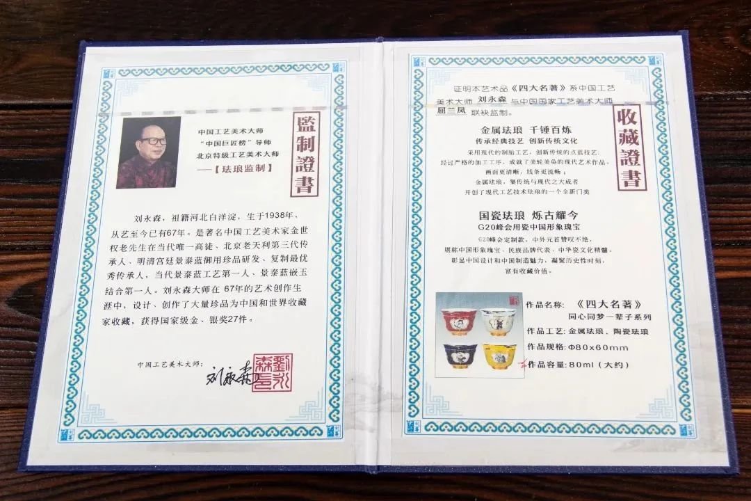 这套《四大名著》转心杯,邀请到了宫廷景泰蓝传承巨匠,中国工艺美术大师刘永森操刀设计并监制。