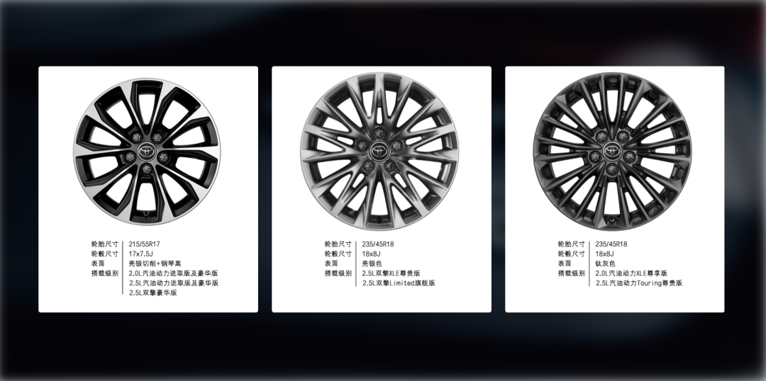 硬件配置部分,雷克萨斯ES200和亚洲龙双擎在外观方面最大的区别就是轮胎轮毂上的差异,后者的轮胎规格为235/45 R18,而前者仅为215/55 R17。对于两款售价均25万元的轿车而言,它们的轮胎规格多少有些“德不配位”。