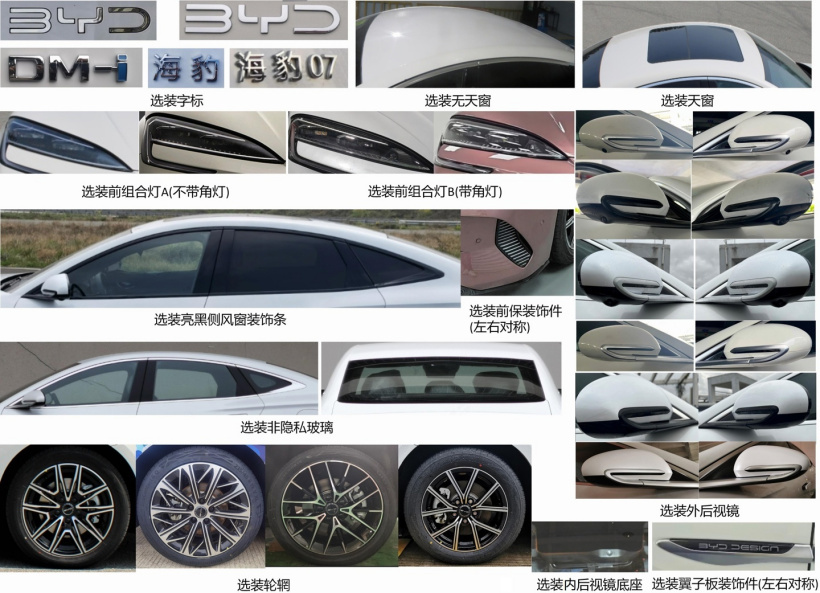 申报信息显示,比亚迪海豹 07 车身尺寸为 4980*1890*1495mm,轴距为 2900mm。新车标配全景天窗,可选装字标、前组合灯、前保装饰件、轮辋,外后视镜、雷达、前摄像头,有前摄像头等配置。