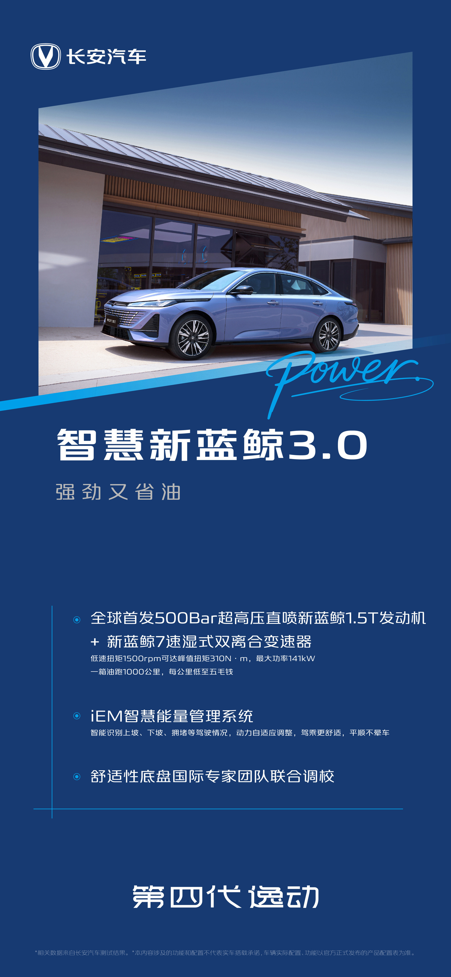 动力方面,搭载智慧新蓝鲸 1.5T 发动机,最大功率为 141 千瓦,峰值扭矩为 310 牛・米,匹配 7 速双离合变速箱。