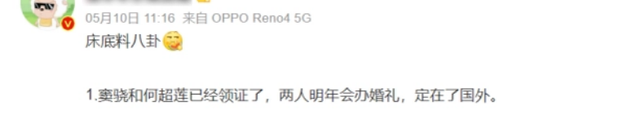 说起来,当时剧播的时候,其实就传出了何超莲跟窦骁已经领证了,所以不方便配合炒作CP,包括窦骁本人在微博也已经改口称何超莲为“媳妇儿”。