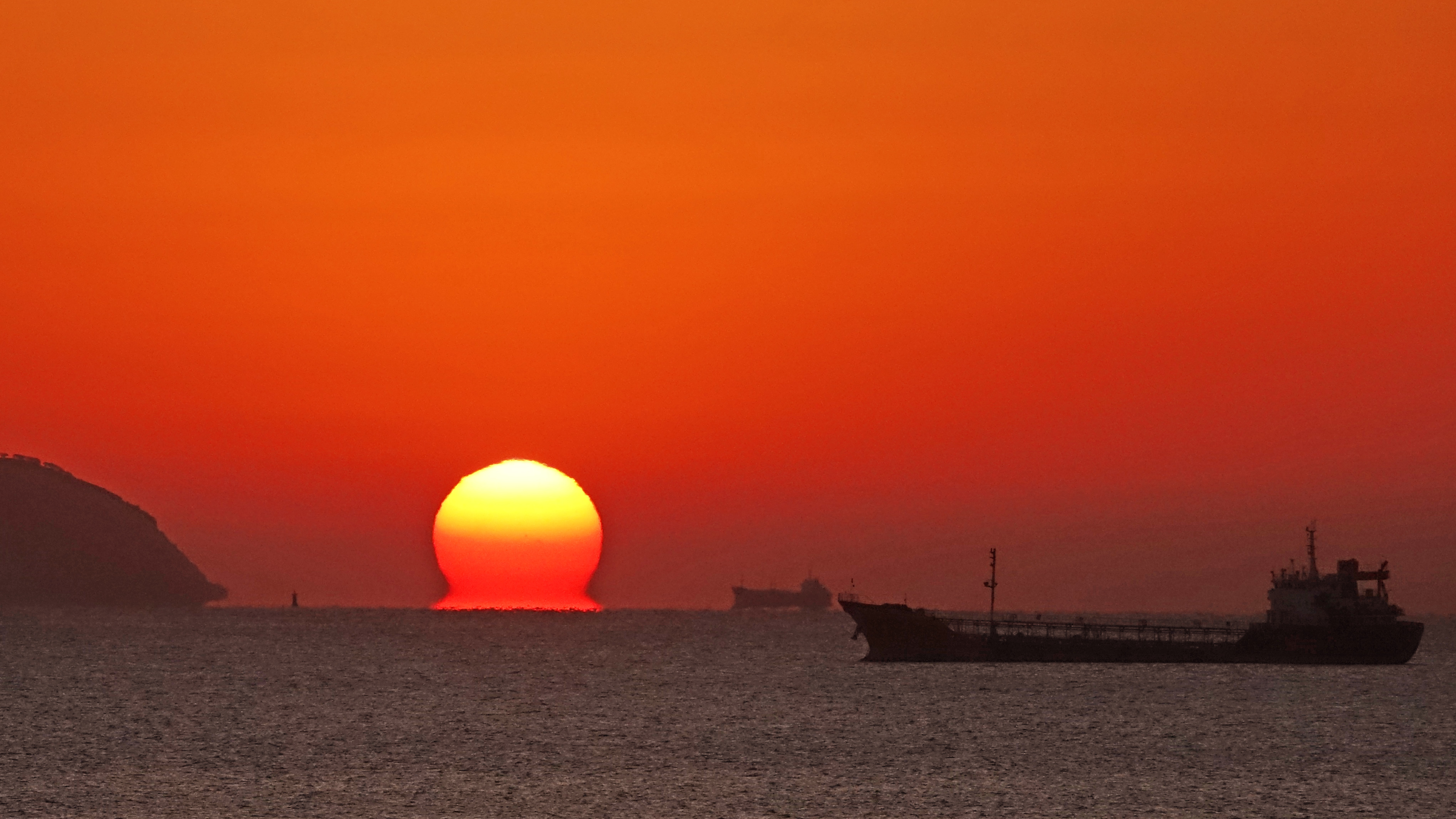 ↑2025年1月1日在辽宁省大连市甘井子区蟹子湾公园拍摄的日出景象。CICPHOTO/刘德斌 摄