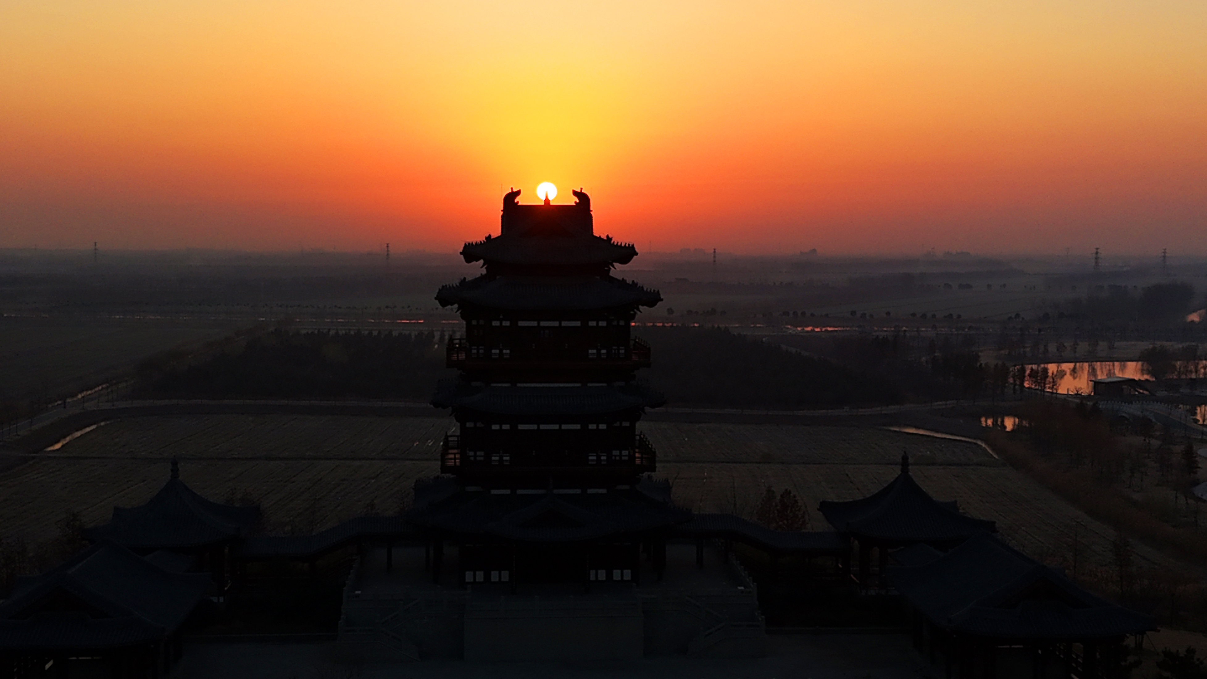 ↑2025年1月1日在辽宁省沈阳市浑河岸边拍摄的日出景象。(无人机照片)CICPHOTO/邹新江 摄
