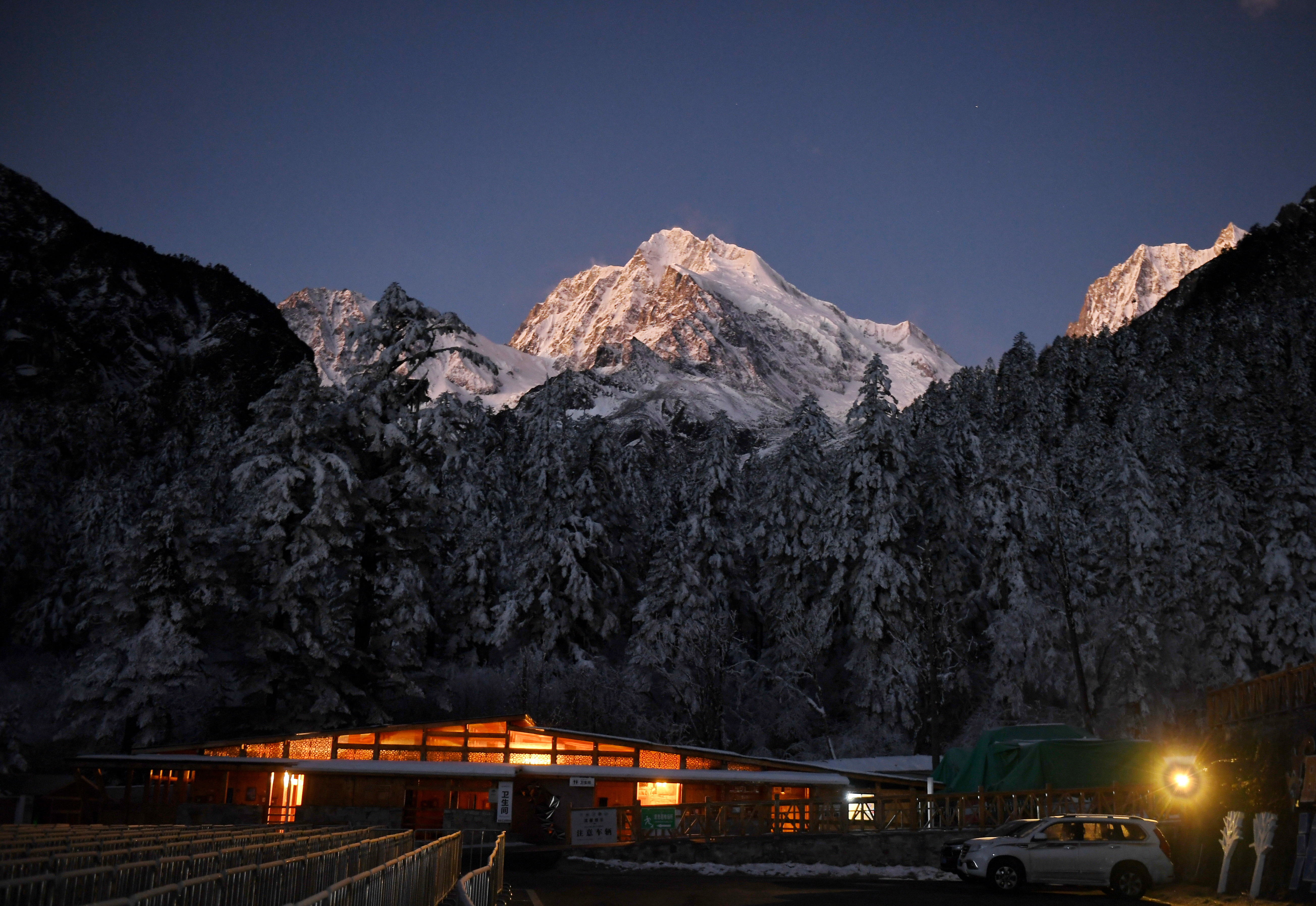 ↑2025年1月1日在位于四川省甘孜州的海螺沟景区拍摄的贡嘎雪山新年晨景。CICPHOTO/李向雨 摄