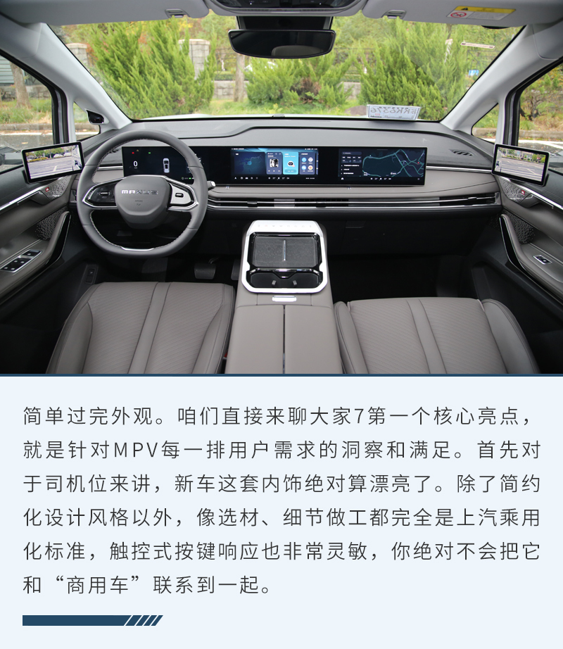 这次试驾上汽大通MAXUS 大家7,即便我知道这个品牌已经拥有10年的MPV打造经验,但最终大家7这款车还是惊艳到我了。就拿今年市面上推出的一些MPV产品来看,大家卷的方面无在乎还是设计、技术含量、智能体验,但大家7这车当我试驾过后,它给我的印象就一点,它真正让我知道,MPV真正应该卷的是什么。从咱们消费者层面来讲,这车绝对值得买。它做到的不仅是你想要的,还有你需要的。