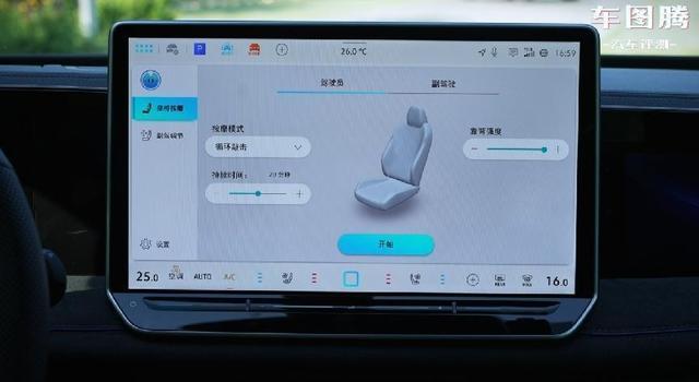 车上的很多其他功能也可以通过中控屏调节和展示,比如双温区空调,前排座椅加热、通风和按摩,这些都可以让乘坐更舒适。