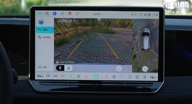 还有360°全景影像+透明底盘,可以让你了解车辆周围的状况,但摄像头的清晰度差点儿意思,我觉得还有提升的空间。