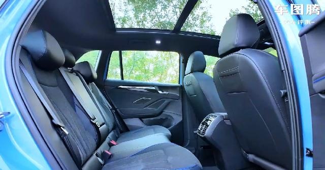 进入后排。前排座椅是刚才舒适驾驶的位置,我一米七的身高,头顶有两拳多一点的距离,膝部有大概3拳的距离,不到三拳。