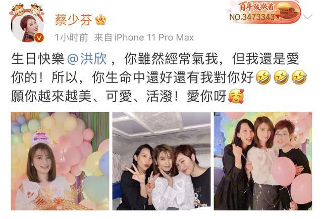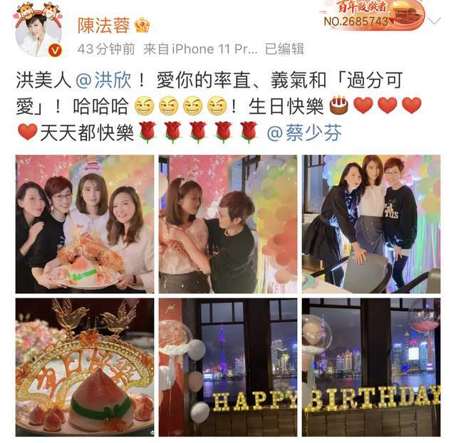 陈法蓉则直接称呼洪欣为“洪美人”,表示自己非常爱洪欣的率直、义气和过分可爱,希望她天天快乐!