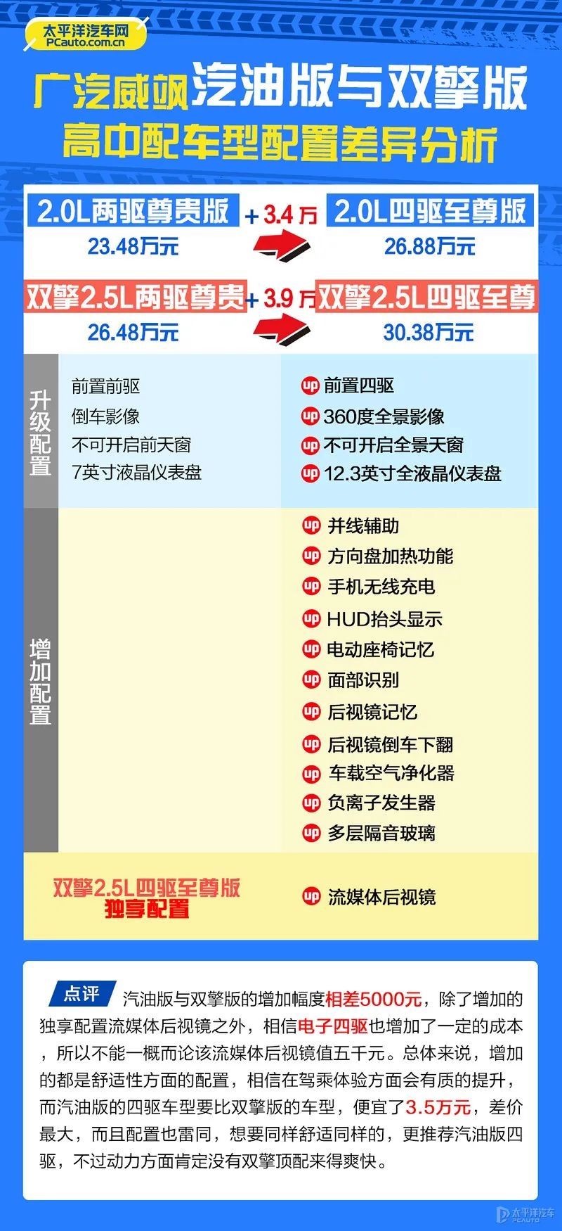 所以换句话说,双擎版车型与汽油版车型,在各个梯度的车型配置都较为一致(顶配车型有一个配置的区别),所以放在一起解析,相信会让您看得更加清晰。对于两种驱动方式,各取所需即可。