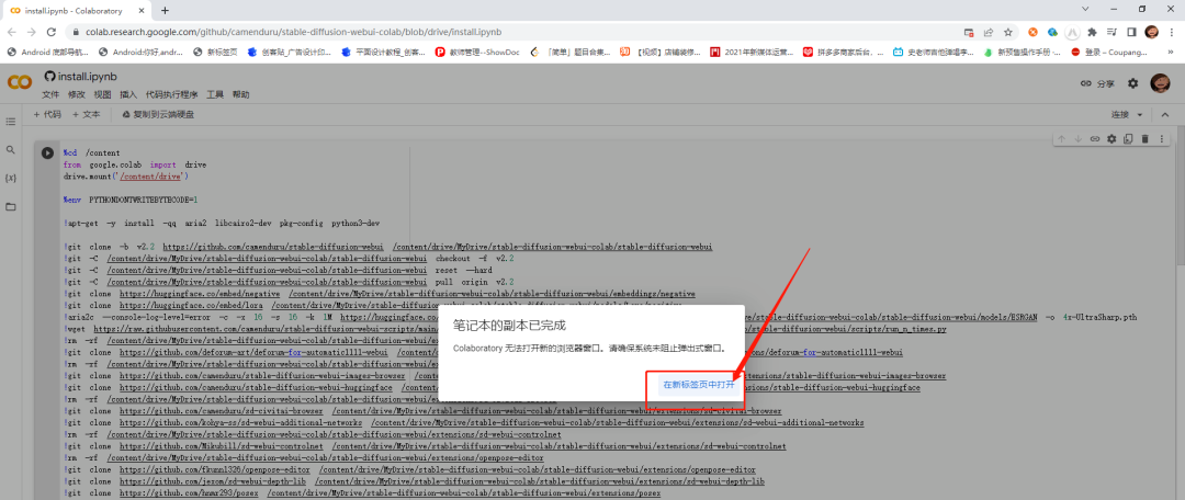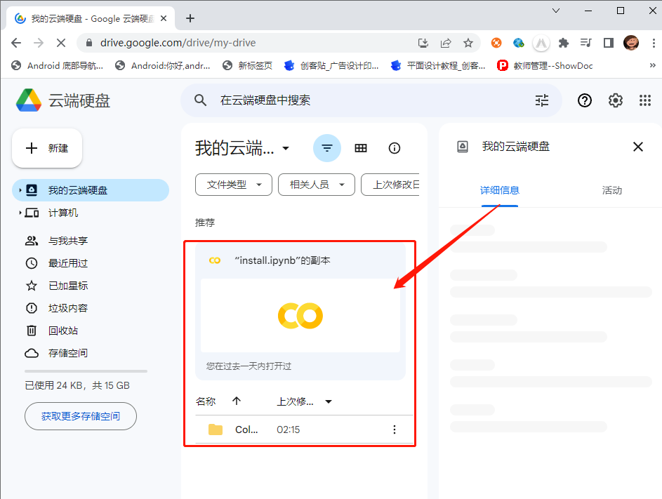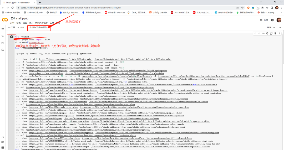 安装也可以。但是为了方便我们后期的使用,我们还是先备份一下。我们先点击一下这个上方的 “复制到云端硬盘”。