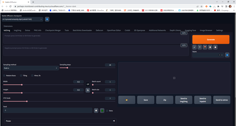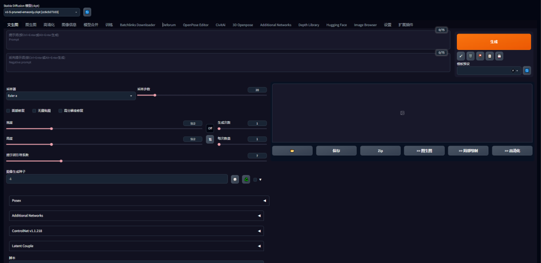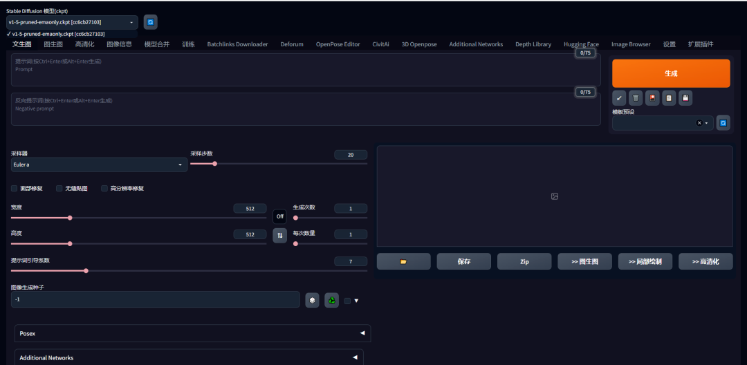 虽然说它这个图很丑。是因为我们现在 没有加载其他模型的原因 但是呢我们现在stable diffusion 是已经可以开始使用了!