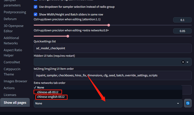 在进来之后,我们看到页面最下方的最后一个选项,然后我们点击一下,然后我们选择这个Chinese-English 0512。