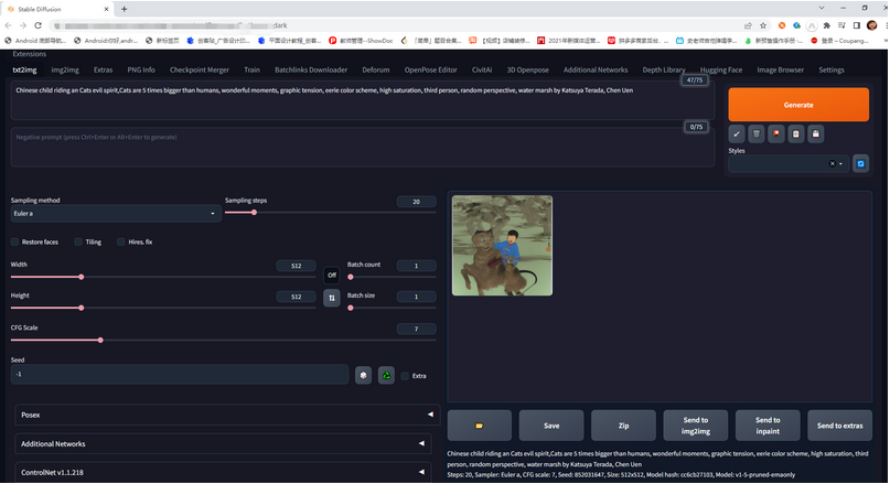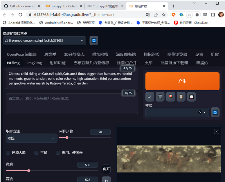 我们尝试了一段时间Midjourney,发现其对图片的可控性较弱。于是研究起了Stable Diffusion。
