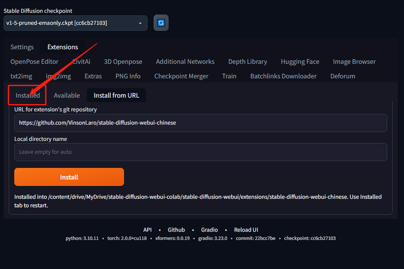 我们点击这个上面的Installed的按钮,看到上图的提升就说明安装完成。重启一下我们的UI就可以看到。