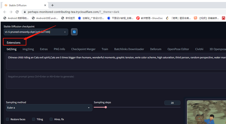 其实我们在完成这一步之后,我们就可以在stable diffusion里面作画, 我们现在简单的演示一下。比如我在这里输入一个描述: