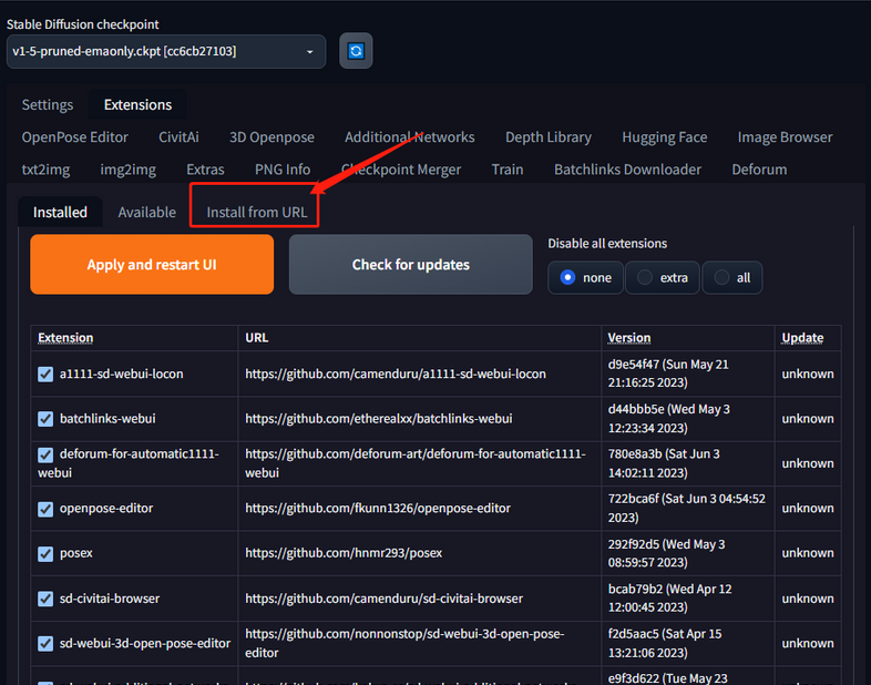 进来之后,我们选择这个上方的install from URL,然后我们点击一下