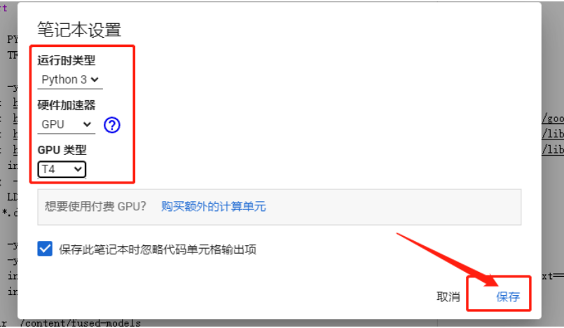 然后点进来之后,我们一定要确认,这个当下的硬件加速器是这个GPU,然后我们选择保存。