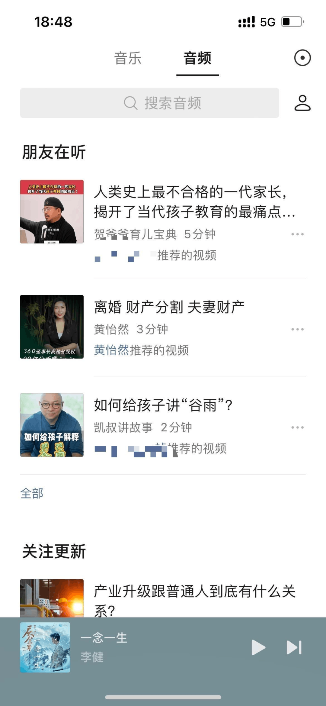 音频节目有基于朋友在听的推荐,也有指定栏目的更新。