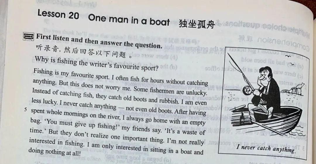 “I'm not really interested in fishing. I am only interested in sitting in a boat and doing nothing at all!”(我其实对钓鱼并不真的感兴趣,我只是喜欢就那么坐在船里放空一切)