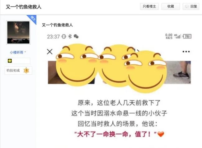 有误入的网友不禁发出呼唤:求你们了讨论一下钓鱼技术吧,别天天不是蛇就是救人什么的。