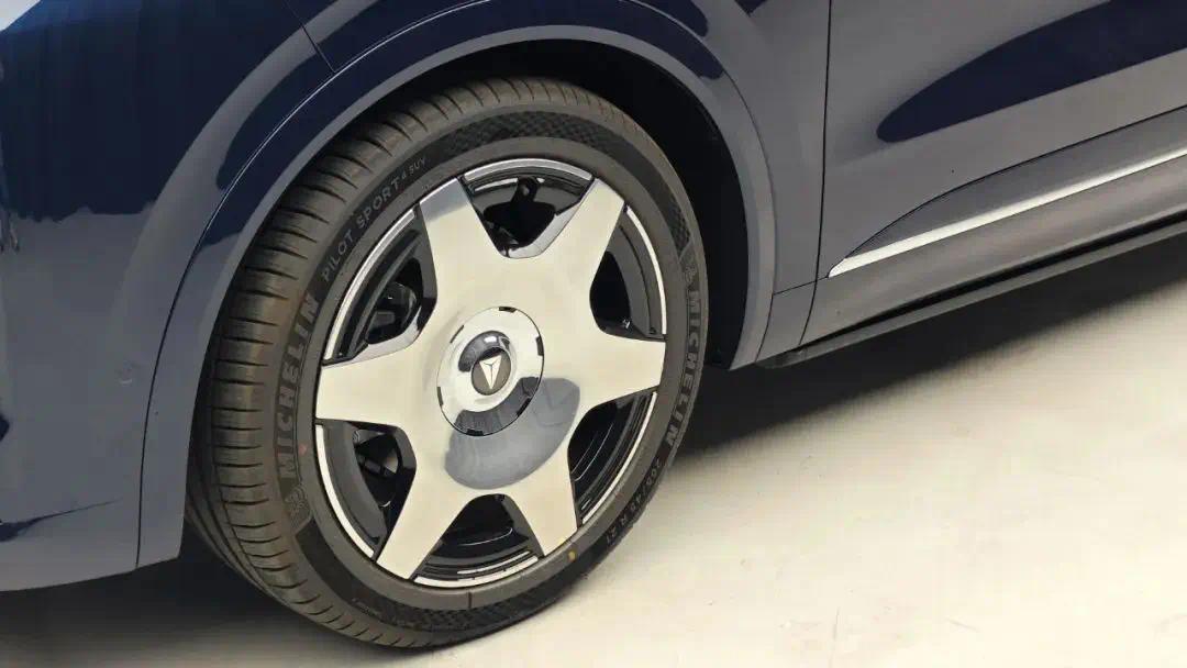 这个21寸轮毂和轮胎都是选装才有,标配为20寸;选装的轮胎为米其林PS4,规格为265/45/21。