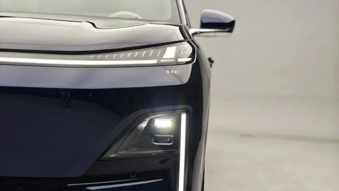 前脸采用封闭式设计,一体贯穿式LED日间行车灯横跨车头,下方两侧灯组中还有远近光LED头灯以及纵向排列的 LED 灯带,整体挺有视觉冲击力。