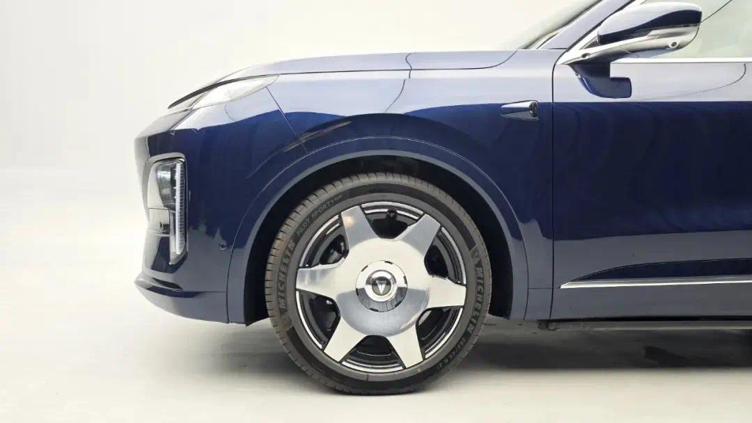 但不同的是,深蓝S09有一个出挑的轮毂造型,有点类似于迈巴赫的六辐式轮毂,印象中这类大面积镀铬装饰的轮毂基本都是百万级豪车的专属。