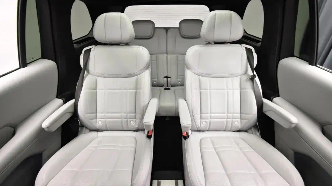 第二排是双零重力座椅配置,座椅16项电动调节,通风加热按摩全都有,此外小桌板、双腿托、双扶手也都配备了。