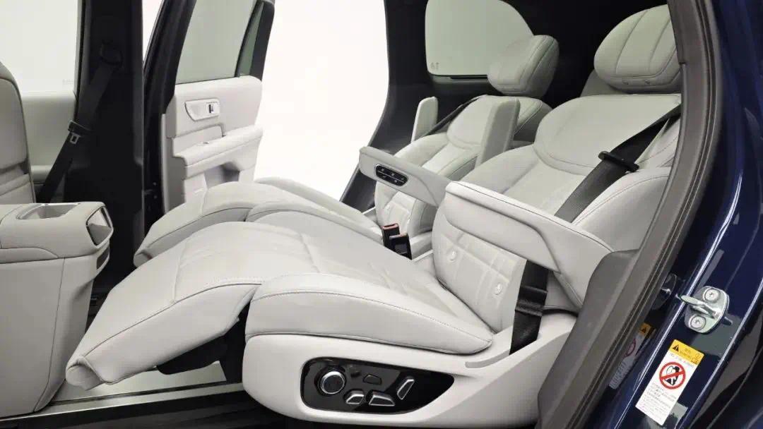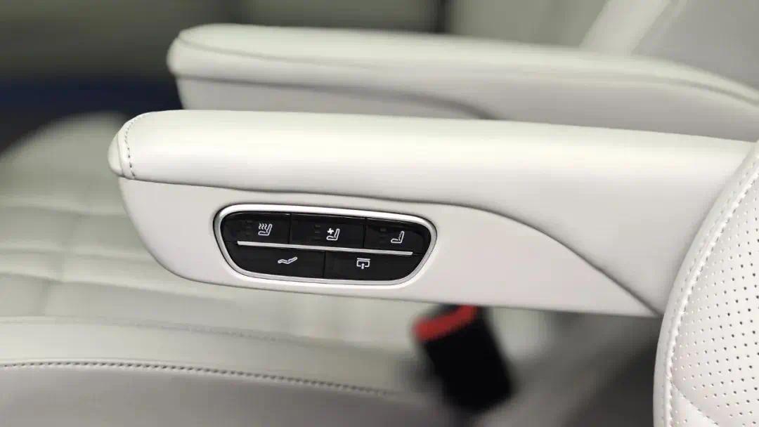 座椅还支持横向移动,具备180mm横滑距离,以及最大530mm纵滑距离,最大腿部空间1051mm,两个座椅扶手内侧都设计有座椅多功能控制按键,座椅靠背能做到120°躺平。
