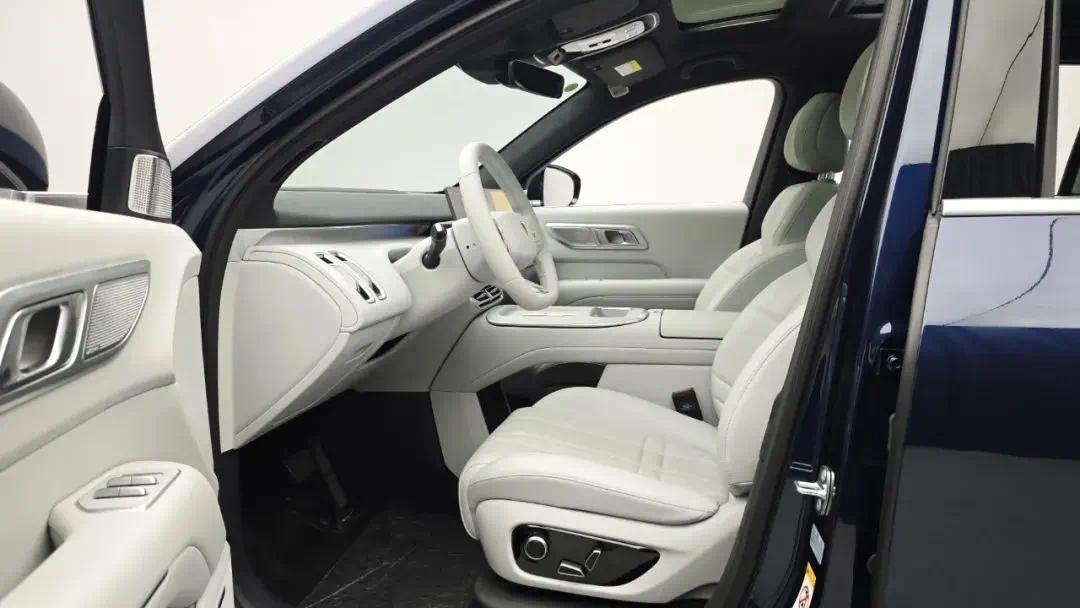 拉开车门可以看到,深蓝S09主驾座椅配置挺高,座椅前后、高低、靠背、腰部均可电动调节。