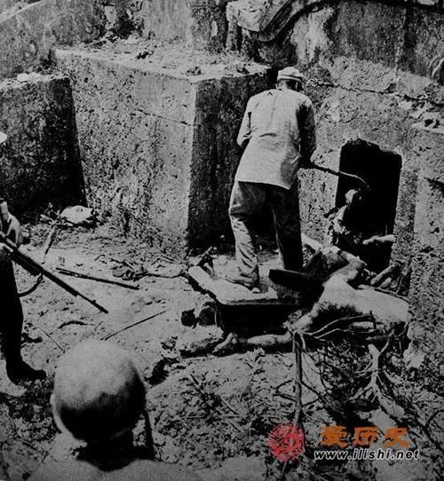 图19. 冲绳战役时,日军士兵利用岛上的中国式坟墓作为掩体抵抗