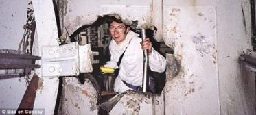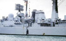 图32. 这是英国“安特里姆”号驱逐舰,该舰被一枚西班牙制造的BRP-250炸弹贯穿,由于时间太短,炸弹无法在舰身内部引爆