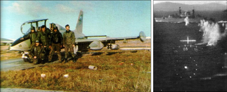 另外一个战例是5月21日,英军的“淘金者”号护卫舰被一架进驻斯坦利港机场的MB-339喷气教练机发射的火箭弹击伤。这表明使用轻型飞机向前部署到马岛打击英军的想法是可行的,美中不足的是小型火箭对英舰不会造成足够的伤害。
