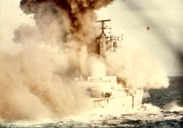 图38. “考文垂”号被天鹰攻击机投放的炸弹命中
