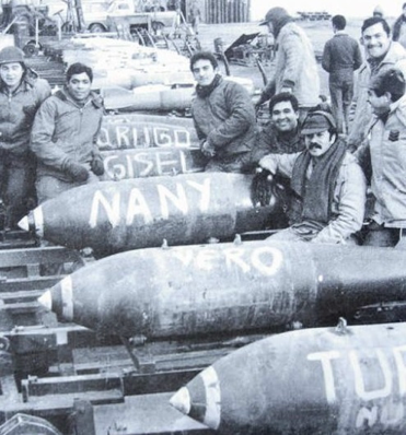 图28. 阿根廷地勤人员与英制MK-XVII炸弹,他们很高兴把这些英国货再甩给英国人