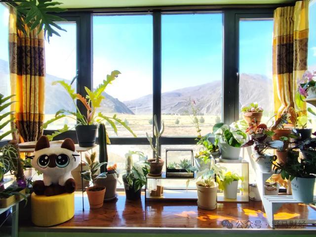 后来沈辉把家搬到了村子里,房间的架子上摆满了他心爱的绿植和玩偶。如果不是窗外的连绵群山,根本看不出这是在西藏。沈辉说,这里最美的季节就是夏季,山谷铺满黄色的油菜花,山坡上开出各色野花,厚厚的积雨云擦着山间飘过,仿佛伸手就能摸到。