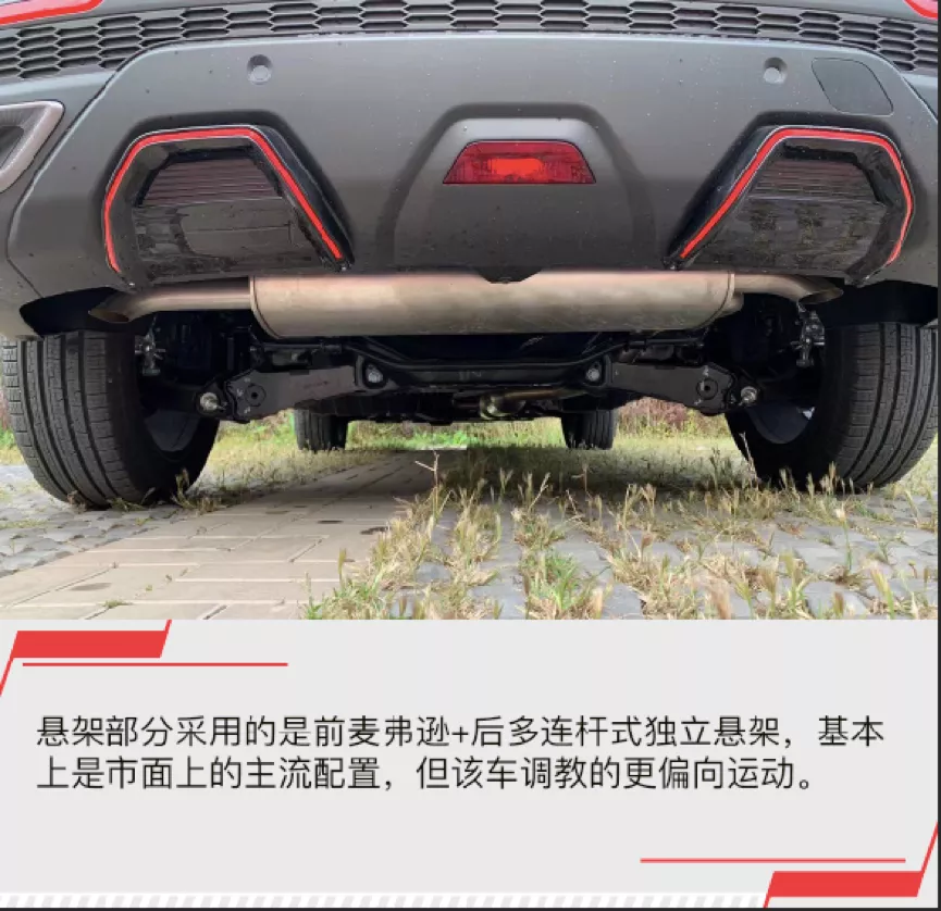 在城市路段行驶的时候悬架的表现更偏向运动,对于减速带过滤效果稍显生硬,可以感受到明显的颠簸起伏,不过在高速行驶或者激烈驾驶的时候,悬架带来的支撑性表现让人比较满意,对于一款偏向运动的SUV来说此种表现可以让人接受,毕竟鱼和熊掌不可兼得。