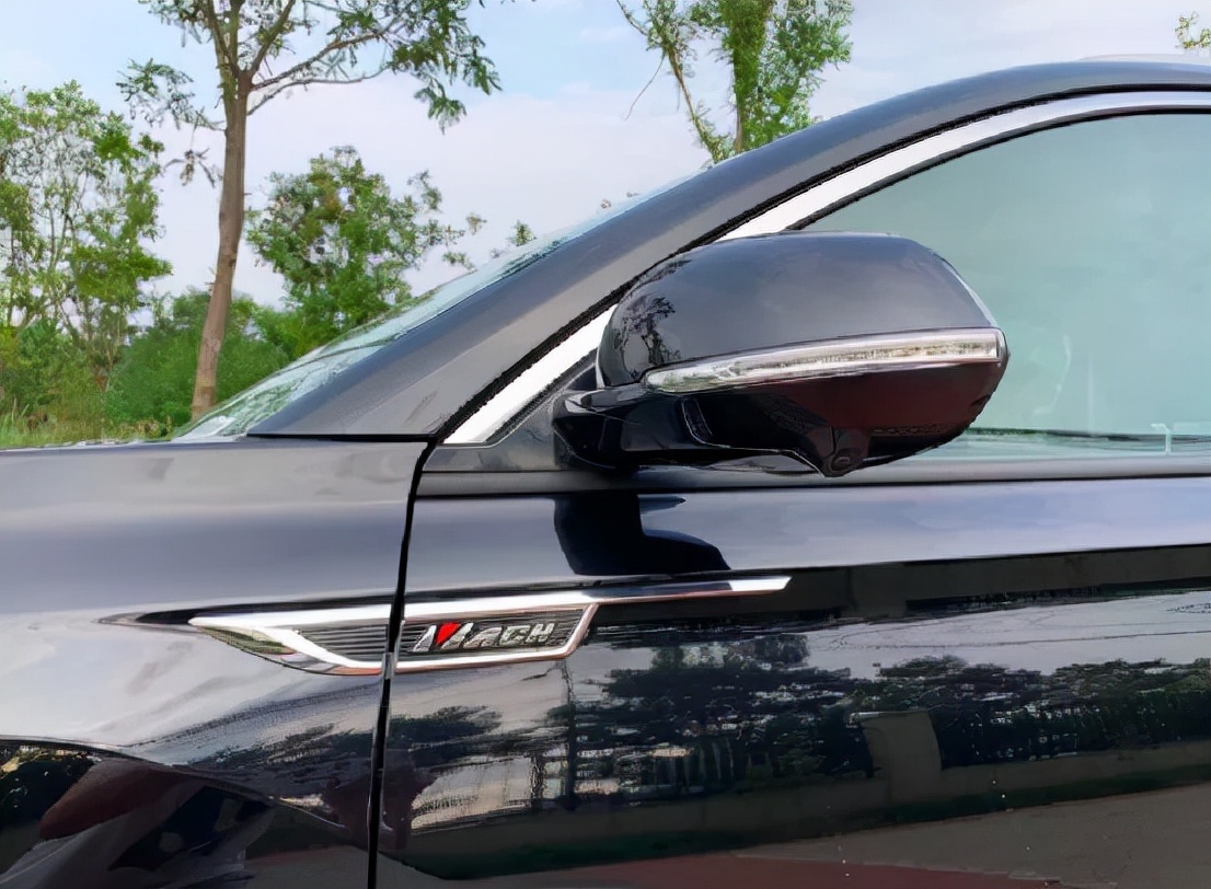 AX7马赫版延续了AX7 PRO的车身造型,流线的线条搭配悬浮式车顶的设计动感十足。后视镜下方增加了一个代表“马赫”的“MACH”徽章,彰显其身份。