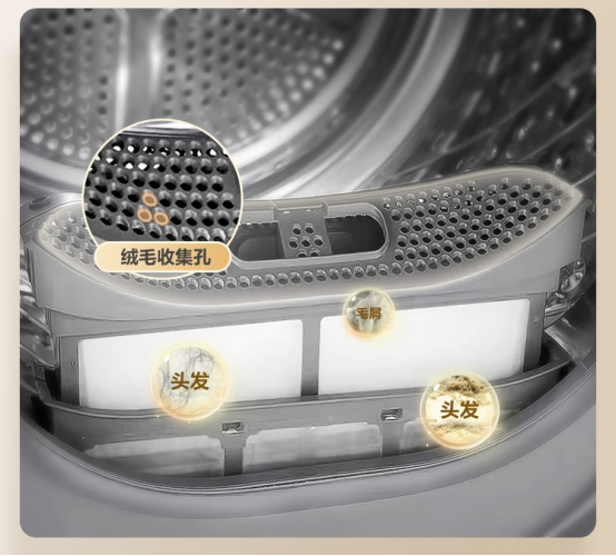 另外,热泵式干衣机还有一个特点,是有毛屑收集器,在干衣的同时能给衣物去除毛发碎屑,还能免于毛发堵塞风道。