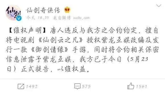 2016年在拍摄《仙剑云之凡》时,唐人在仅有剧版授权的情况下加推手游,被仙剑版权方大宇软星起诉。此次决裂,让唐人失去了仙剑这枚立身保命的超级IP;更因为手游出品方是其丈夫的公司,蔡艺侬至今也没能撕下“恋爱脑”的标签。