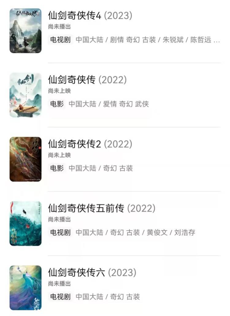 翻开繁忙程度堪比王健林的排班表,多达五六部的仙剑影视剧正在赶来的路上: