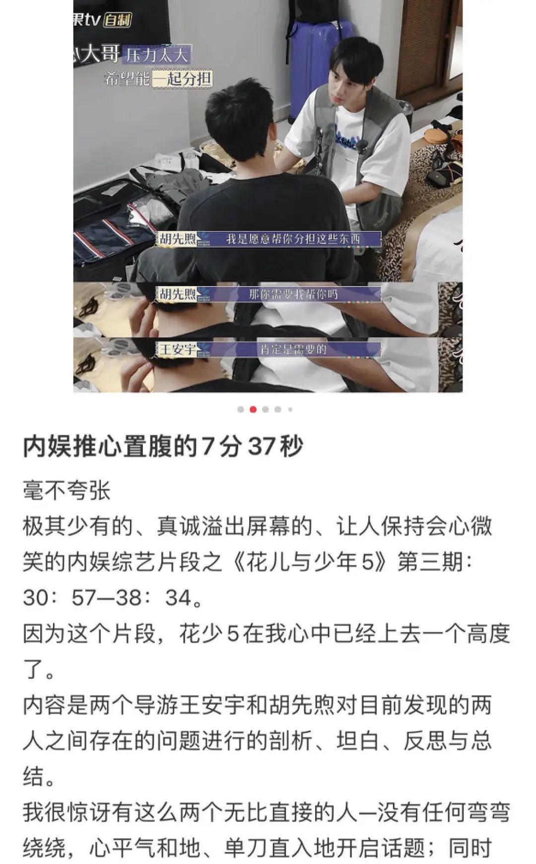 别的综艺是正片比加更精彩,这一季《花少》是加更与正片为共生关系,只看正片错过一亿,路人粉遍地。