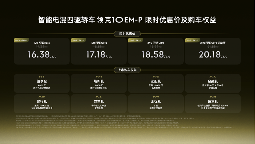 相当于领克10 EM-P人为制造了一种占便宜的紧迫感,促使潜在客户“先上车再说”,同时又像特斯拉的“限时金融方案”一样给未来保留了价格调整的灵活性——销量好,可以随时收回;销量达不到预期,就顺理成章将“限时”变成“常态”。