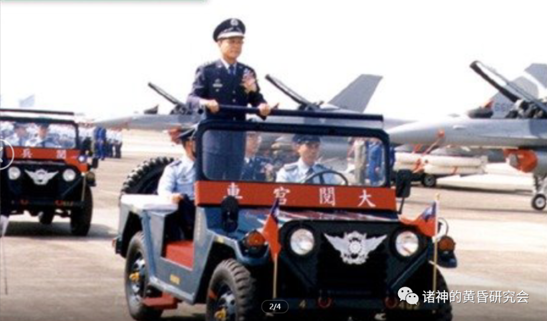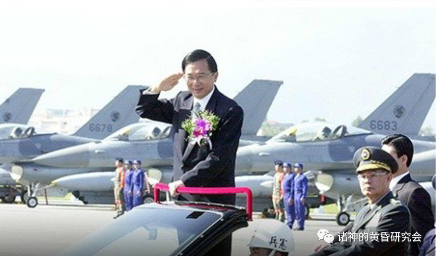 2002年1月16日陈水扁参加第401联队成军仪式实况,身后是“参谋总长”汤曜明一级上将。